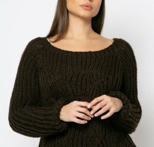 Πλεκτή μπλούζα κοντόφαρδη με μεγάλες κοτσίδες