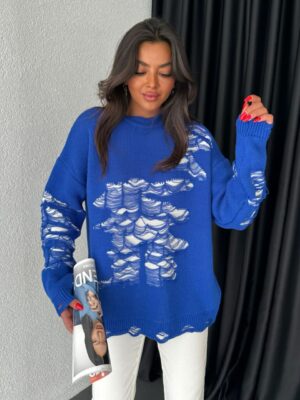 Μπλούζα Πουλόβερ Πλεκτό Με Ξέφτια Στο Τελείωμα Και Στο Μπροστινό Μέρος