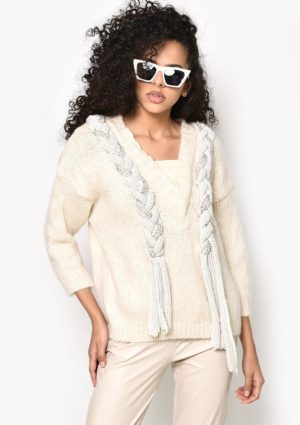 Πουλόβερ άνετο με V διακοσμημένο με πλεξούδες
