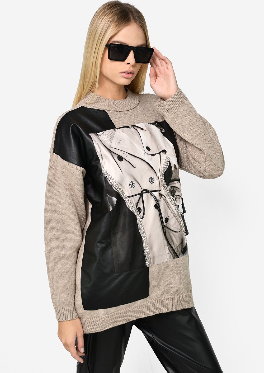 Μπλούζα ζιβάγκο διακοσμημένη με δερρμάτινες λεπτομέρειες και stras