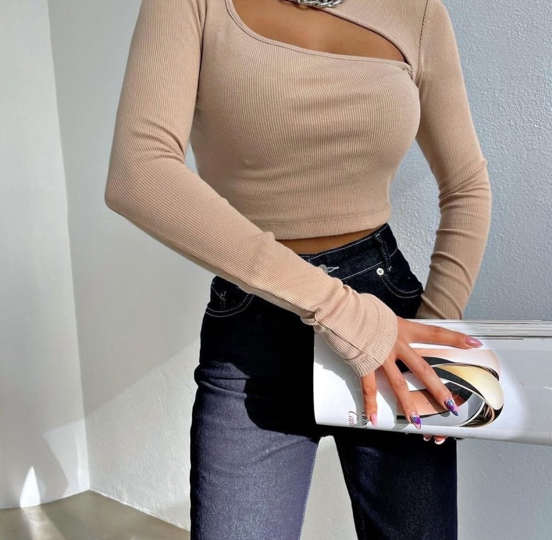 Μπλούζα μακρυμάνικη με άνοιγμα στο στήθος