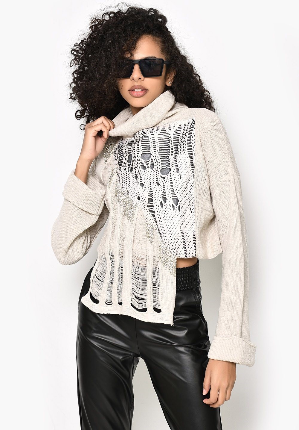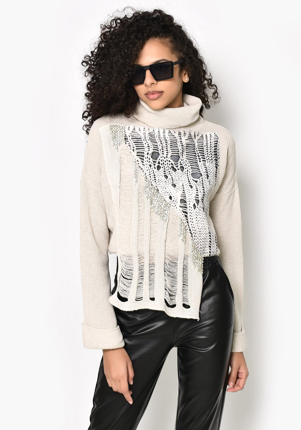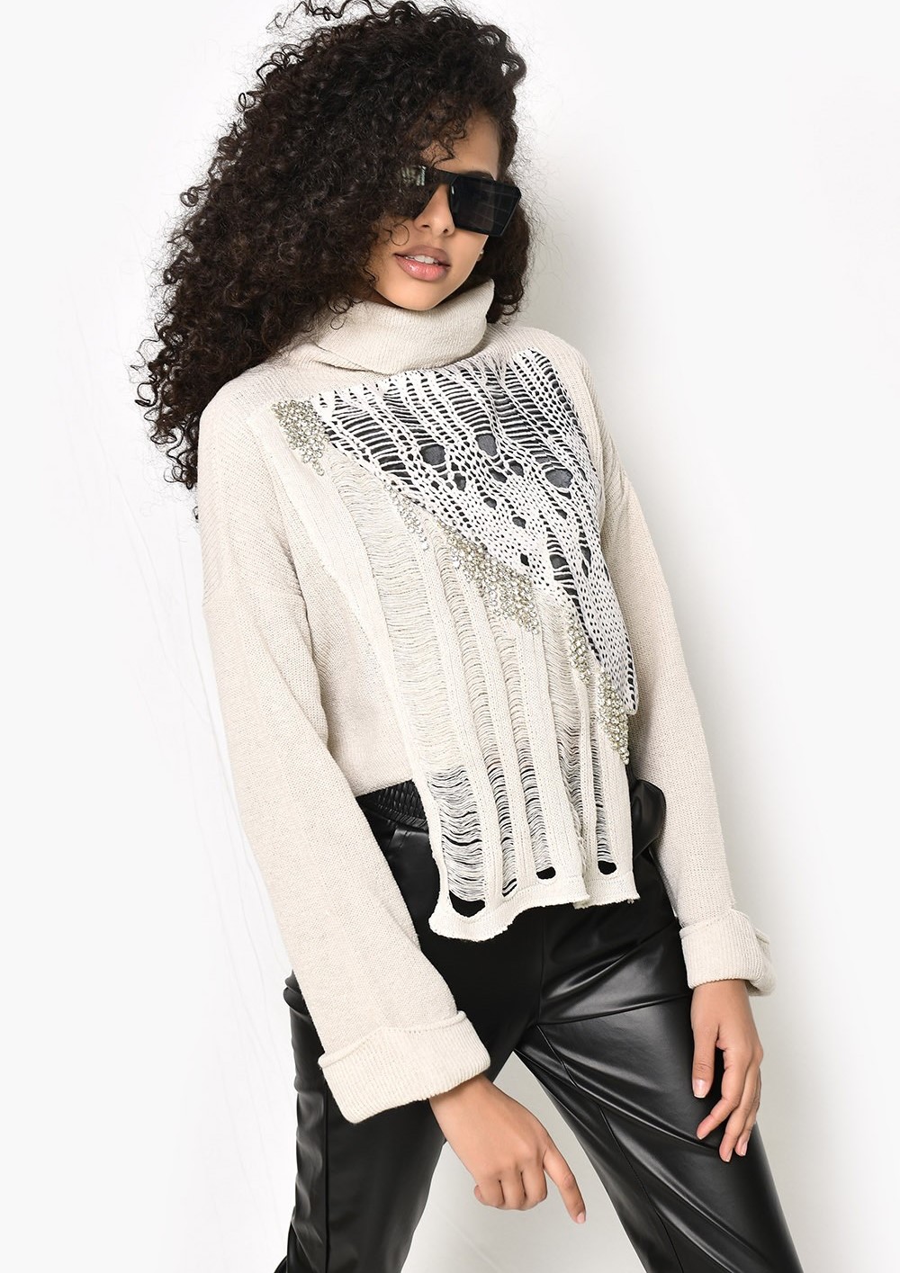 Πουλόβερ ζιβάγκο διακοσμημένο  με stras
