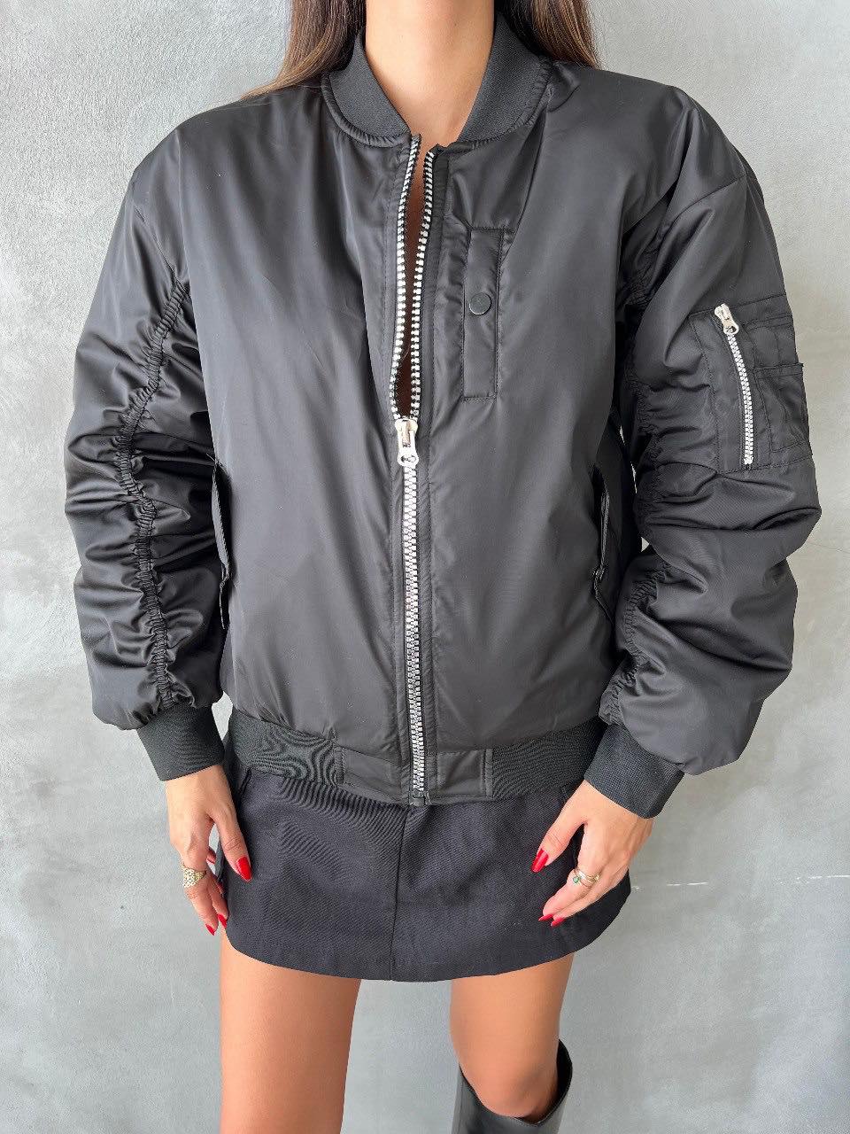 Μπουφάν Bomber Με Φερμουάρ Τσέπες Και Λάστιχο Στο Τελείωμα